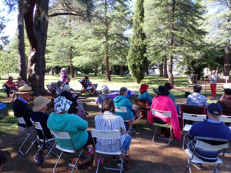 Robyn Sykes brought Brush With Poetry (usually held in Binalong) to Haig Park in Canberra for a poet’s breakfast. This open mic session included presentations by more than a dozen poets from the region plus a number of interstate visitors and ‘passers-by’ who were keen to recite poems or share their original work. The morning concluded with local musical duo, The Cashews, playing a set of their own songs.